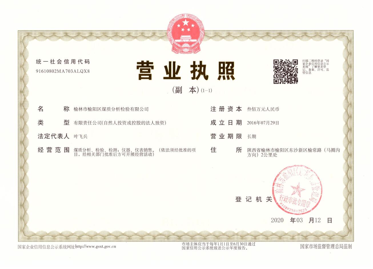 榆林市榆陽區(qū)煤質(zhì)分析檢驗有限公司是一家從事煤炭質(zhì)量檢驗檢測的公司,其前身是陜西省榆林市榆陽區(qū)煤炭公司質(zhì)量檢驗部,成立于2005年,是其內(nèi)設機構。經(jīng)過十多年的努力與發(fā)展,檢驗室各方面的條件與能力都達到了一定規(guī)模,并于2016年7月29日由陜西省榆林市榆陽區(qū)煤炭公司出資注冊為獨立法人企業(yè)。2017年1月13日,公司順利通過檢驗檢測機構資質(zhì)認定評審工作并取得了由陜西省質(zhì)量技術監(jiān)督局頒發(fā)的《檢驗檢測機構資質(zhì)認定證書》。
